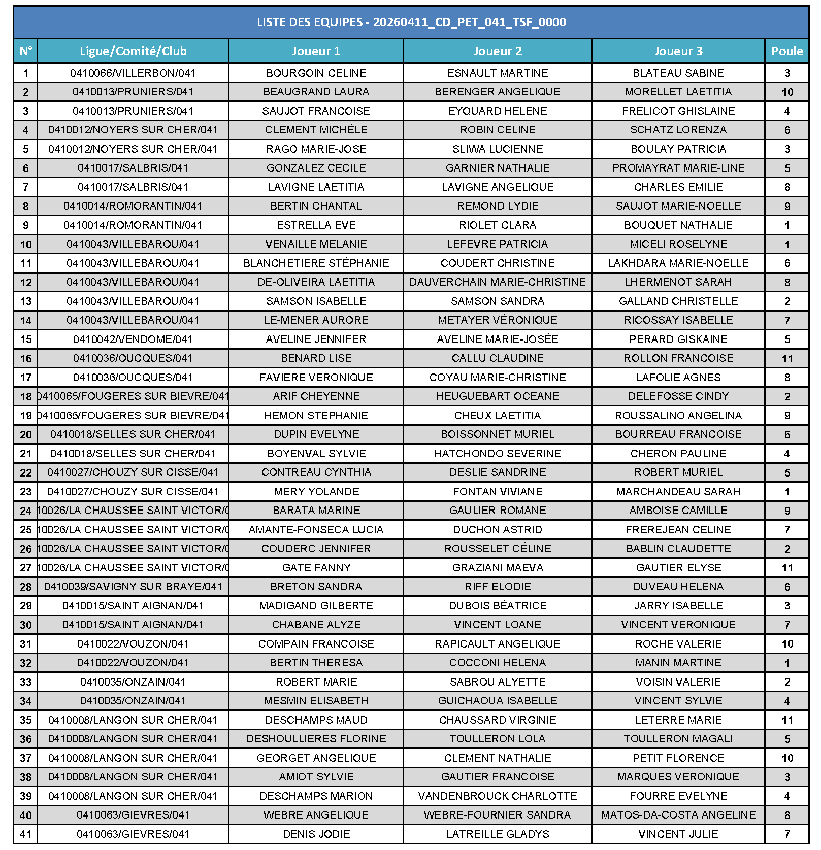 Le Comité Départemental du Loir & Cher organise le Championnat Triplette Promotion les 21 & 22 mars à Vendôme - Participation de 134 triplettes - Jet du but samedi 21/03 à 14h - Découvrer ci-après la liste des joueurs engagés, le tirage des poules, le live direct des résultats du Championnat - clic sur les logos...A vos Boules pour le CDC Féminin & Open 2026